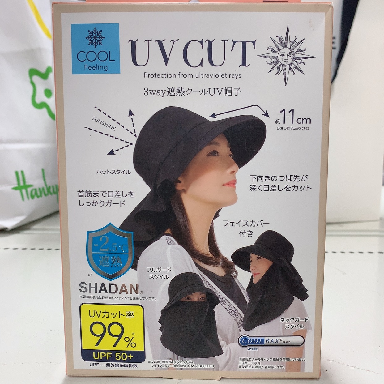 特价:SHADAN uv cut 防晒帽带面罩可遮脖子 帽沿11cm 黑色4571414684699