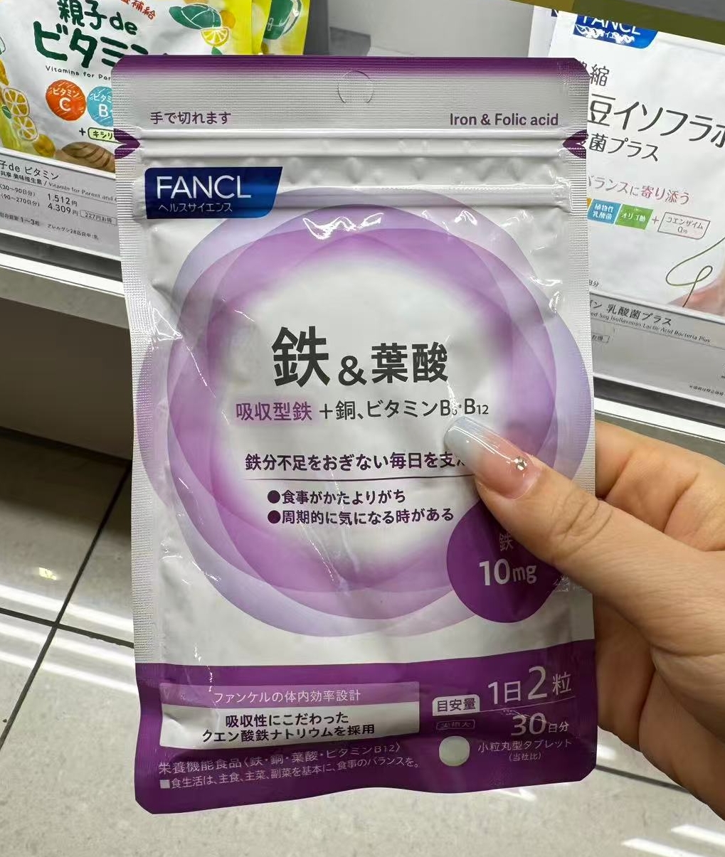 代购:新款紫袋芳珂 fancl 补铁叶酸片营养素孕妇可用补铁营养素改善贫血 60粒30日分(5946)