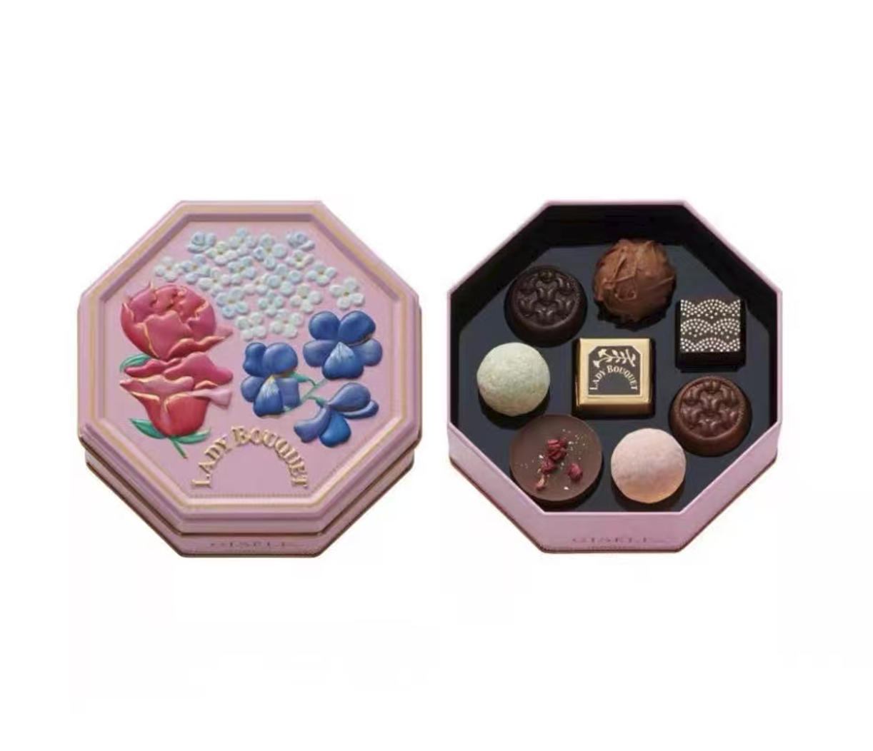 Morozoff 情人节限定 粉色女士花束铁盒包装 花朵巧克力 8个入(缺货退款)(可以发包税)