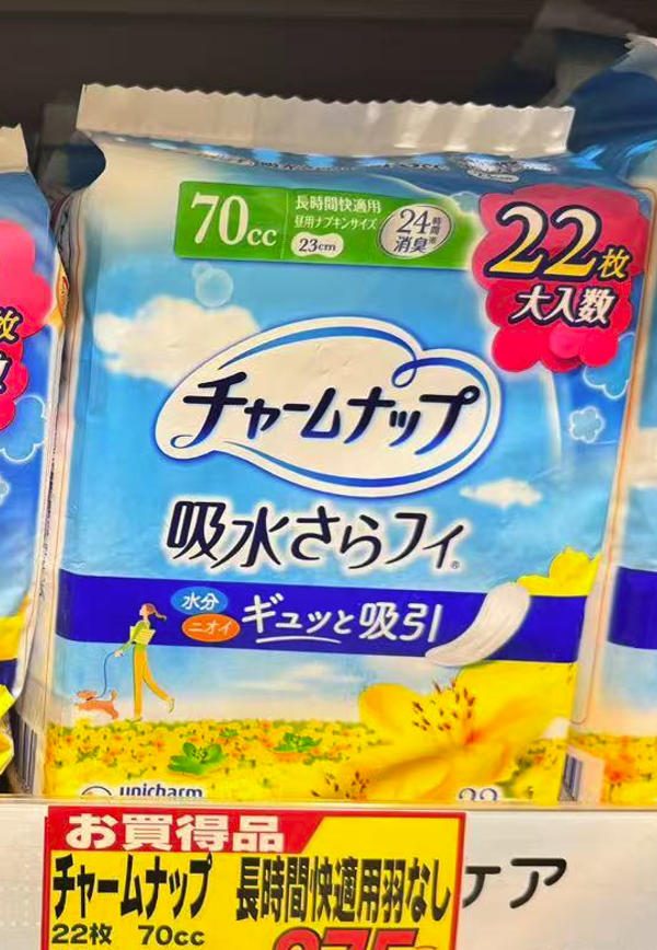 苏菲 UNICHARM尤妮佳 抗菌消臭卫生巾护垫 长时间舒适用 70cc23cm 花香 大包装22枚入