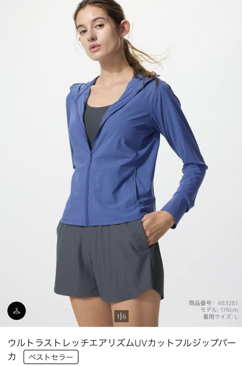 优衣库 AIRism高弹力防紫外线拉链连帽开衫女士防晒外套 多色多尺码可选(483281)(缺货退款)